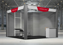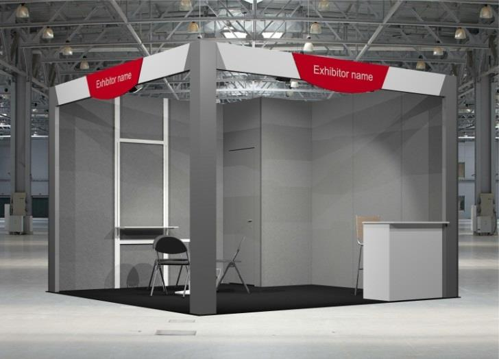 Nr. 1 insegna per ogni lato aperto dello stand, indicante il nome dell’Azienda Espositrice in font Arial nero + stampa della bandiera dello Stato di appartenenza